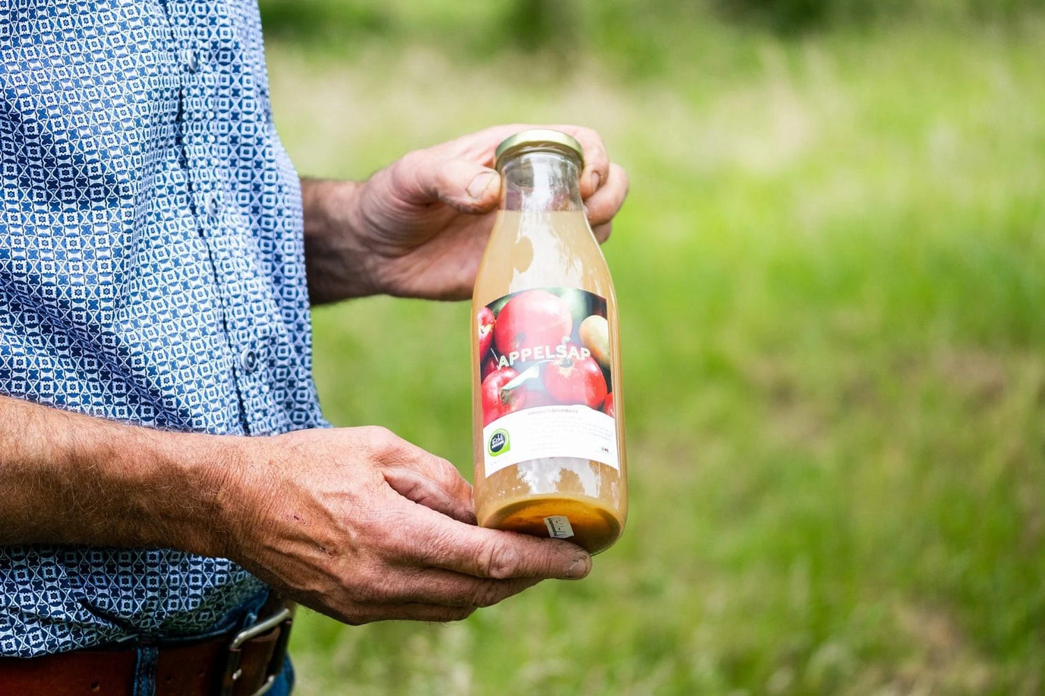 "Versgeperst 100% Puur Appel Peren Sap - Gemaakt van Appels en Peren uit de Boomgaard van Boerderij de Kolke"